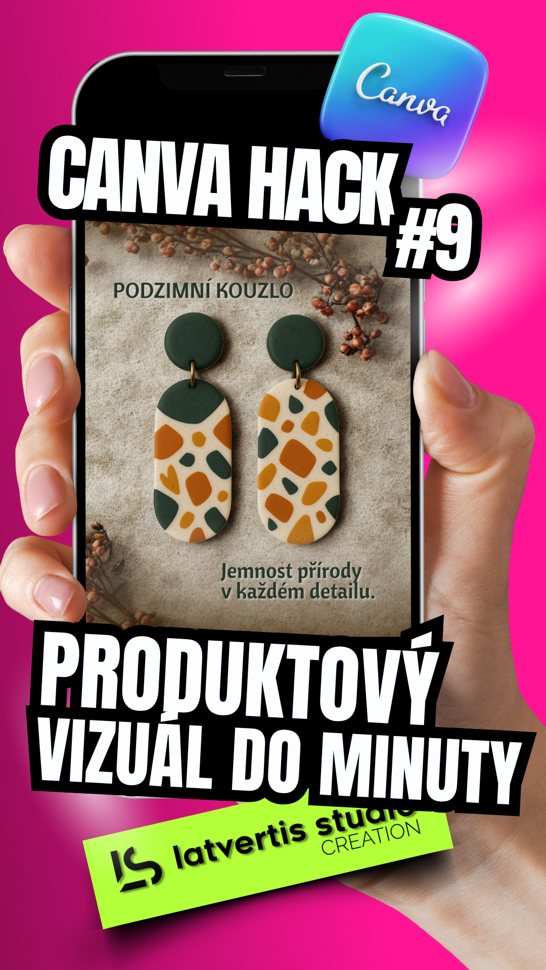 - Hotový vizuál uložte. Pro popisek příspěvku na sociální sítě si z druhého souboru (PŘÍKAZY_TEXTY_ŠPERKY) zkopírujte jednu z profesionálních šablon pro popisky, případně doplňte název svého šperku a máte hotovo!